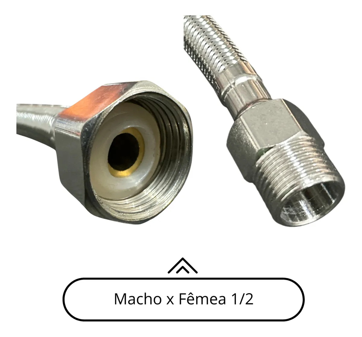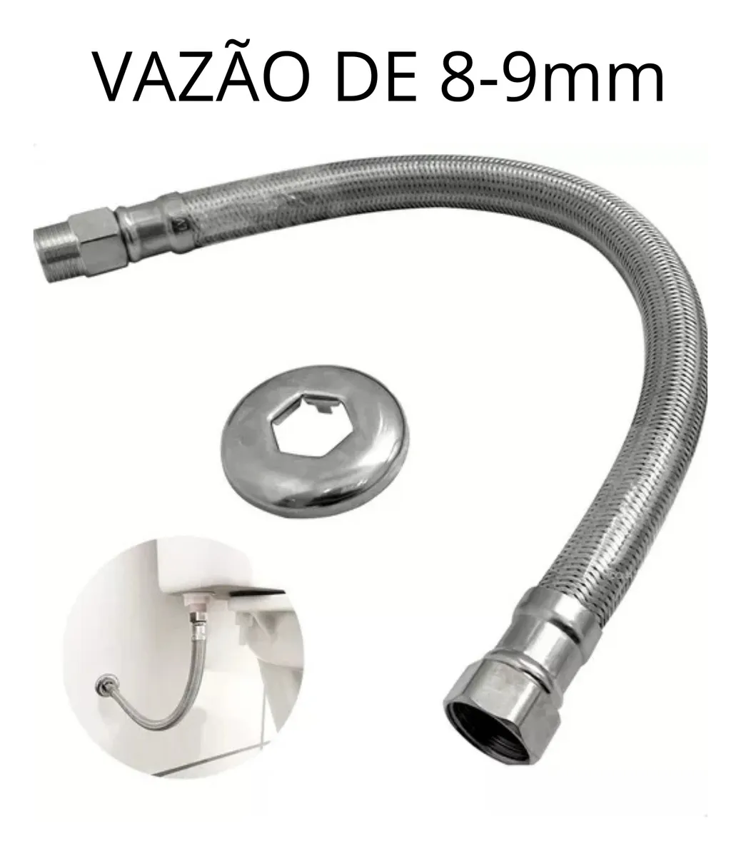 Engate Flexível Rabicho Alta Vazão Malha de Aço Inox 30cm Macho x Fêmea 1/2″